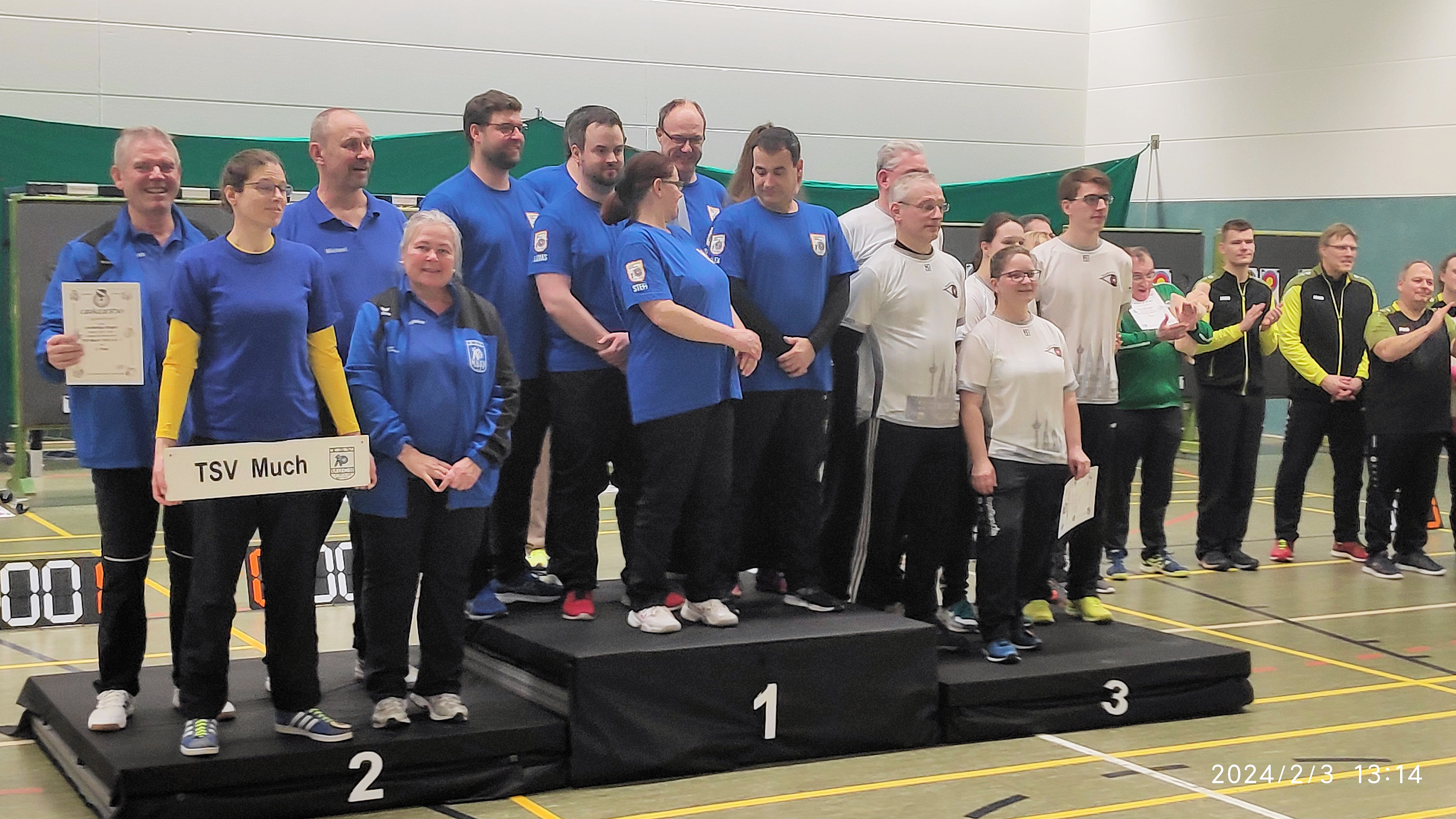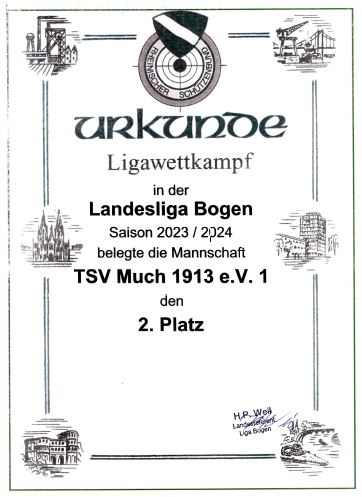 ### Am Finaltag wurden wir vom Auswerteprogramm bei Punkt- und Satzgleichheit mit dem Bogenteam Cölln auf den 2. Platz gesetzt. Damit wären wir in die Landesoberliga aufgestiegen. BT Cölln hat allerdings offiziell Einspruch eingelegt und am 7-Feb-2024 entschied das RSB-Schiedsgericht korrekterweise (nach Ligaordnung) zugunsten des BT Cölln (3. Sortierkriterium: Direkter Vergleich beider Mannschaften über alle Wettkampftage - 5:3 zugunsten BT Cölln). Somit sind wir nun Drittplatzierte und steigen nicht auf. Dies ist dennoch ein hervorragendes Ergebnis für die Mannschaft. Der nachstehende Text wurde entsprechend abgeändert. ###